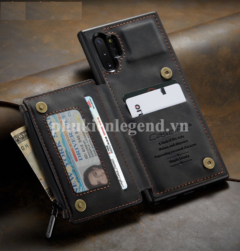 Ốp Lưng Da Bò Thật Chính Hãng CaseMe Kèm Ví Chống Sốc Cho Samsung Galaxy Note 10 Plus