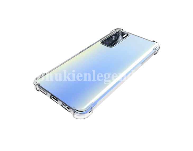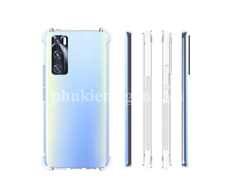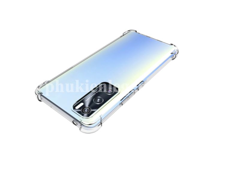 Ốp lưng dẻo trong chống sốc Vivo V20 SE chất liệu TPU dày 0.9 mm, mềm dẻo, trong suốt, có độ đàn hồi cao, có thể bóp lại, cuộn lại mà không biến dạng. Ốp lưng được thiết kế với 4 góc dày dặn hơn (hầu hết khi rơi máy các góc sẽ va chạm đầu tiến), kết hợp với phần khung viền từ nhựa dẻo TPU cao cấp khá dầy dặn (~1mm), phần tiếp xúc với cạnh máy có làm thêm các đường gân không những giúp cho ốp cầm chắc tay hơn mà còn tăng khả năng đàn hồi, bảo vệ toàn bộ máy luôn an toàn trước mọi va chạm, mặt lưng còn 4 chấu nhỏ nhô cao để nâng phần lưng của máy lên khi để lên bàn hạn chế xước Camera sau của máy. Mọi chi tiết hoàn thiện của ốp lưng đều làm rất đẹp, các vết cắt mịn, đều. Các phím bấm được làm nổi giúp thao tác dễ dàng.