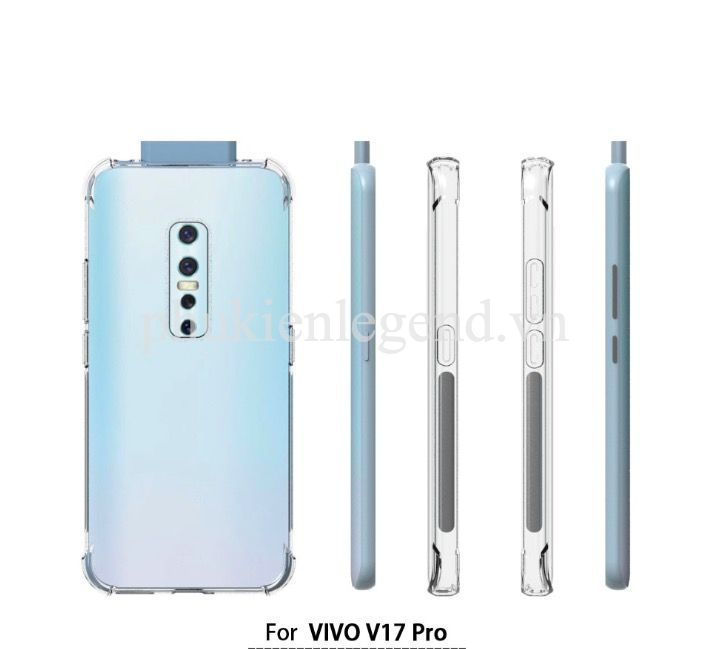 Ốp lưng dẻo trong chống sốc Vivo V17 Pro chất liệu TPU dày 0.9 mm, mềm dẻo, trong suốt, có độ đàn hồi cao, có thể bóp lại, cuộn lại mà không biến dạng. Ốp lưng được thiết kế với 4 góc dày dặn hơn (hầu hết khi rơi máy các góc sẽ va chạm đầu tiến), kết hợp với phần khung viền từ nhựa dẻo TPU cao cấp khá dầy dặn (~1mm), phần tiếp xúc với cạnh máy có làm thêm các đường gân không những giúp cho ốp cầm chắc tay hơn mà còn tăng khả năng đàn hồi, bảo vệ toàn bộ máy luôn an toàn trước mọi va chạm, mặt lưng còn 4 chấu nhỏ nhô cao để nâng phần lưng của máy lên khi để lên bàn hạn chế xước Camera sau của máy. Mọi chi tiết hoàn thiện của ốp lưng đều làm rất đẹp, các vết cắt mịn, đều. Các phím bấm được làm nổi giúp thao tác dễ dàng.