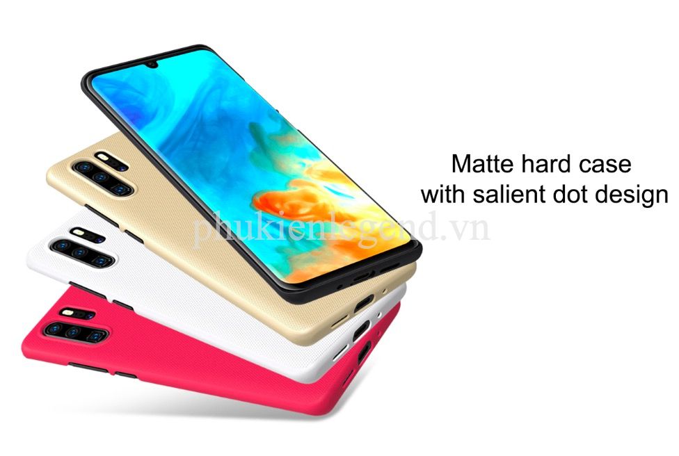 Ốp lưng  Huawei P30 Pro chính hãng Nillkin dạng sần. Chất liệu PC có khả năng đàn hồi tốt, không bị giòn và khả năng chống trầy xước tốt. Mặt sau ốp lưng được làm dạng sần với các ô ca rô nhỏ, thiết kế tiện lợi này giúp ốp lưng bám vào tay tốt hơn, tránh trơn trượt và không lưu lại dấu vân tay. Ốp lưng nillkin rất mỏng, chỉ khoảng 0.9mm, ôm khít thân máy, giữ nguyên thiết kế máy, các chi tiết camera, volume, loa…được làm chính xác thuận tiện nhất cho người sử dụng. Sản phẩm có nhiều màu và tặng kèm giá đỡ điện thoại.