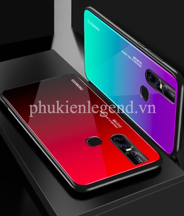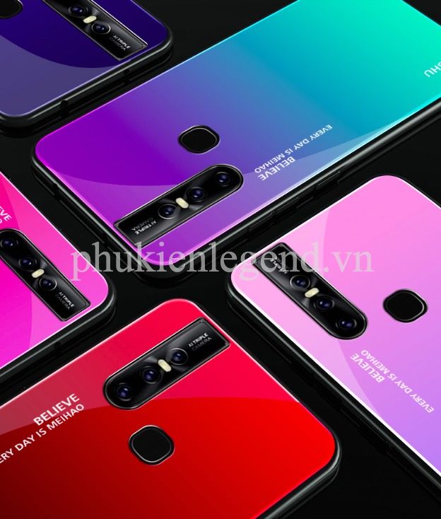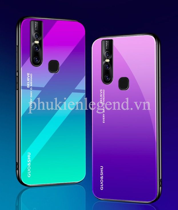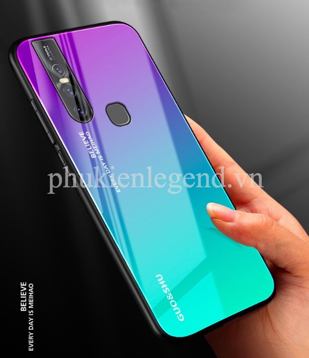 Ốp lưng kính màu Gradient viền dẻo cho Vivo V15
