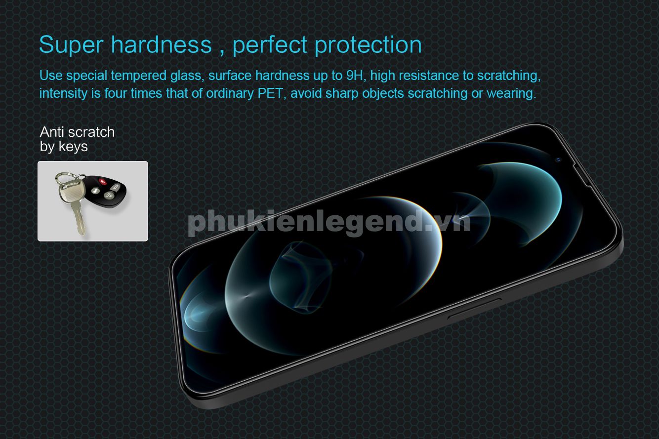 Tấm dán kính cường lực iPhone 13 Pro Max chính hãng Nillkin Amazing độ cứng 9H. Những ưu điểm vượt trội của dán kính cường lực so với miếng dán thông thường là dầy dặn hơn với độ cứng vượt trội gấp 3 lần (độ cứng kính là 9H, dán bình thư...